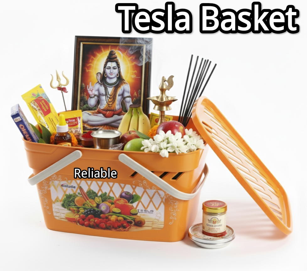 Description : Multipurpose semi virgin plastic Basket with Lid. Suitable for vegetables, fruits, pooja basket etc. Available in 4 colors